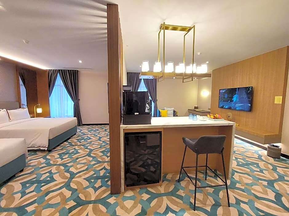 This spacious suite consists of 1 living room, 1 separate bedroom and 1 bathroom with a walk-in shower and free toiletries. The air-conditioned suite provides a flat-screen TV with cable channels, soundproof walls, a mini-bar, a tea and coffee maker as well as a quiet street view. The unit offers 2 beds.